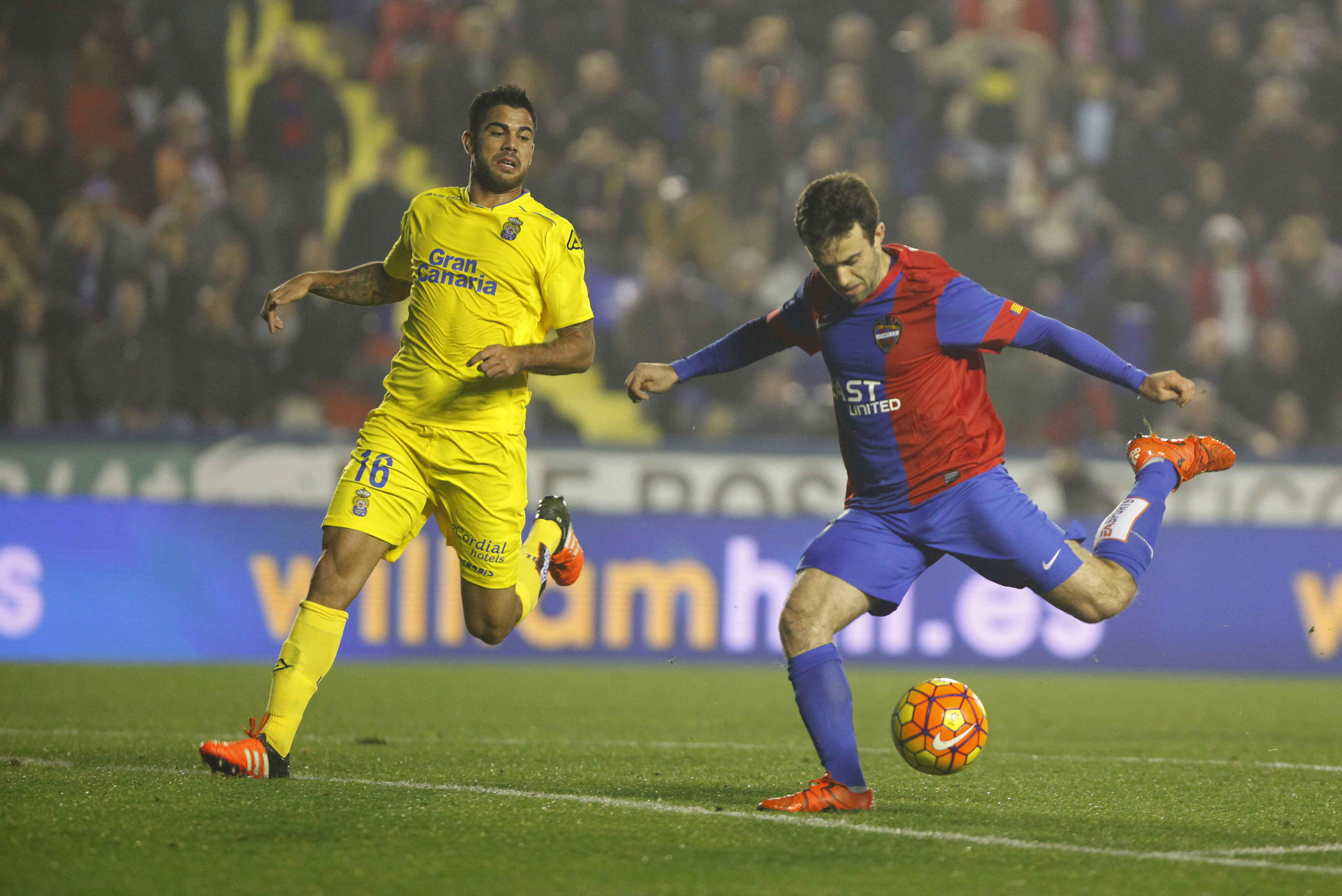 Morales se entrometió en el homenaje que recibió David Navarro en el choque número cien del defensor valenciano en la máxima categoría y también en el partido que supuso el estreno de Rossi en su aventura como nuevo jugador del Levante. El atacante madrileño capitalizó el duelo ante la U.D. Las Palmas con dos dianas que eleva sus registros generales hasta cinco, contabilizando los goles alcanzados durante el actual ejercicio de Liga. El comandante volvió a emerger puntual a su cita con el gol como viene desarrollando con fidelidad en las últimas semanas. Morales volvió a saludar con un aire marcial en señal de júbilo. Rayo, Celta y Las Palmas han sufrido los efectos devastadores de las botas del polivalente jugador. “Estoy muy contento por los goles, pero sobre todo por la victoria que hemos obtenido ante un rival directo”, manifestó a la conclusión de un encuentro agitado que devuelve a la escuadra azulgrana a la vida.