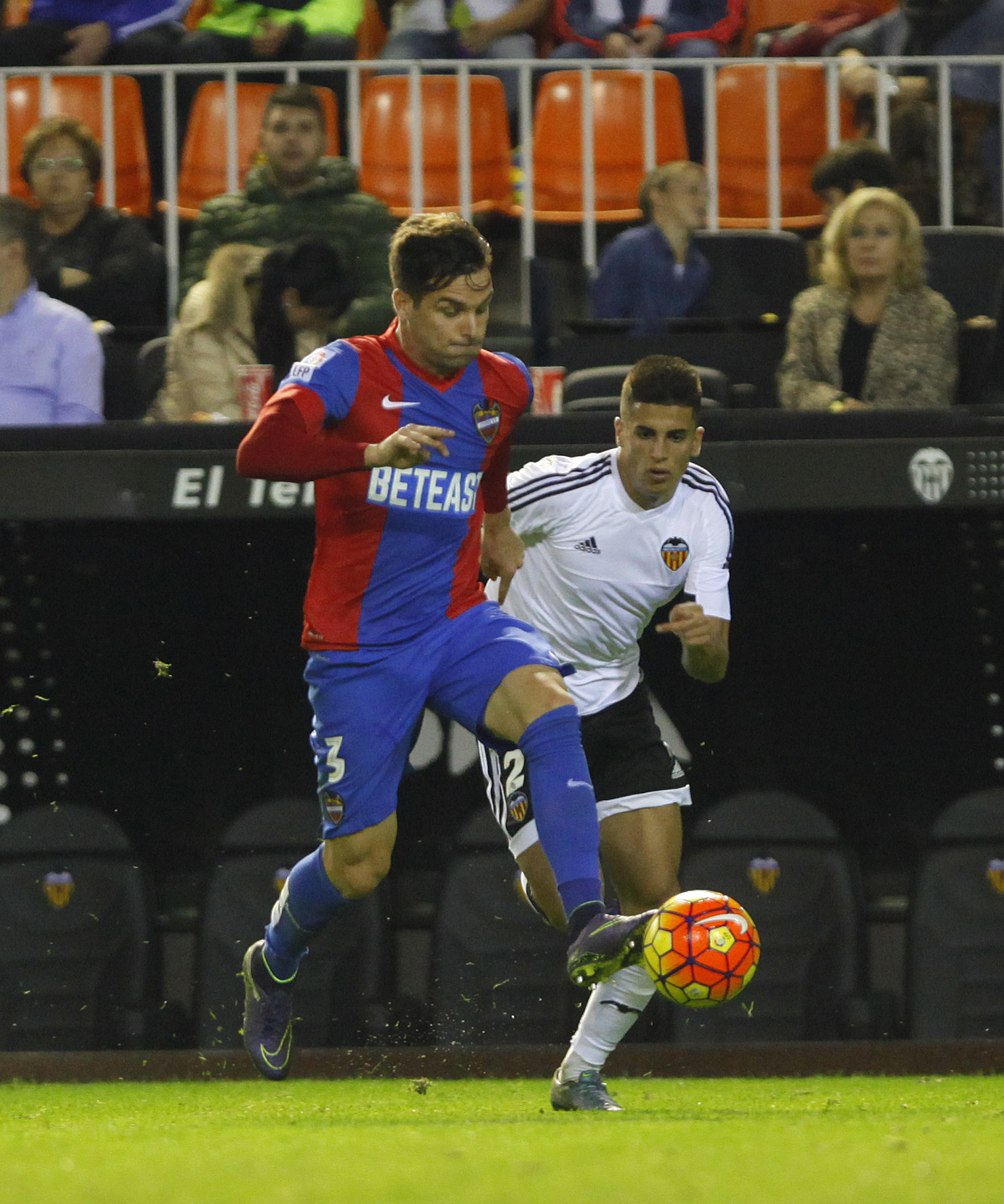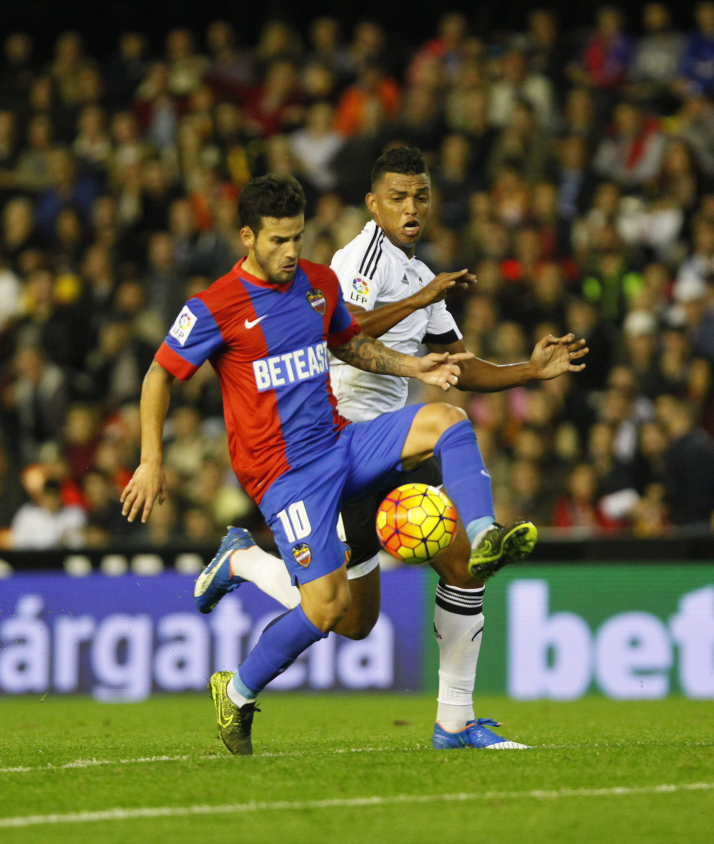 El colista salió respondón. Esa condición no era una losa para soñar con la utopía. Ni pesaba sobre la conciencia de unos jugadores que sentían casi desde el cielo de Mestalla el aliento de su masa social. El Levante adelantó sus posiciones y presionó con osadía la salida del balón local. El Valencia no estaba cómodo sobre el pasto. La alineación evidenció mutaciones. Pedro López, Rubén o David recuperaron la titularidad. Morales dio dos pasos al frente para situarse en el costado derecho del ataque y Camarasa, Jefferson y Simao poblaban la línea de medios de efectivos. El Levante se sintió libre en Mestalla. Y no tardó en auto convencerse de sus posibilidades. Morales rasgó el perfil diestro del ataque azulgrana convirtiéndose en una pesadilla para Gayá y Toño demostró, por el espacio contrario, que sus botas son las que más centran de la Liga BBVA. No había rastro del equipo que se derrumbó ante la Real Sociedad en Orriols. El Levante se comportaba como un colectivo vigoroso y fuerte. Los primeros minutos sancionaban su superioridad.Morales retó a Jaume en el arranque de la cita. En ese sentido la acción fue un paradigma de lo que iba a acontecer. Percutía un Levante en plena proyección y replicaba el guardameta del bloque de Nuno. Las maniobras visitantes tenían como principal epicentro el territorio valencianista. El Levante ganaba consistencia aunque estuvo carente de precisión. Roger se dio de bruces con el larguero en un remate que parecía superar al portero, en una reedición de los hechos sucedidos la pasada semana, y un centro de Toño se paseó por la línea de gol. Juanfran rozó el gol con un cabezazo que pasó silbando sobre la portería blanca. Toño volvió a surgir en el nacimiento de la segunda mitad. Las miradas quedaron centradas en la figura de Jaume. Y el fútbol se hizo todo crueldad. Todo cambió en un segundo. Con el penalti transformado por Alcácer y la diana de Feghouli. Bakkali cerró una tarde que, pese a la inclemencia y severidad de la derrota, genera un pequeño haz de luminosidad.