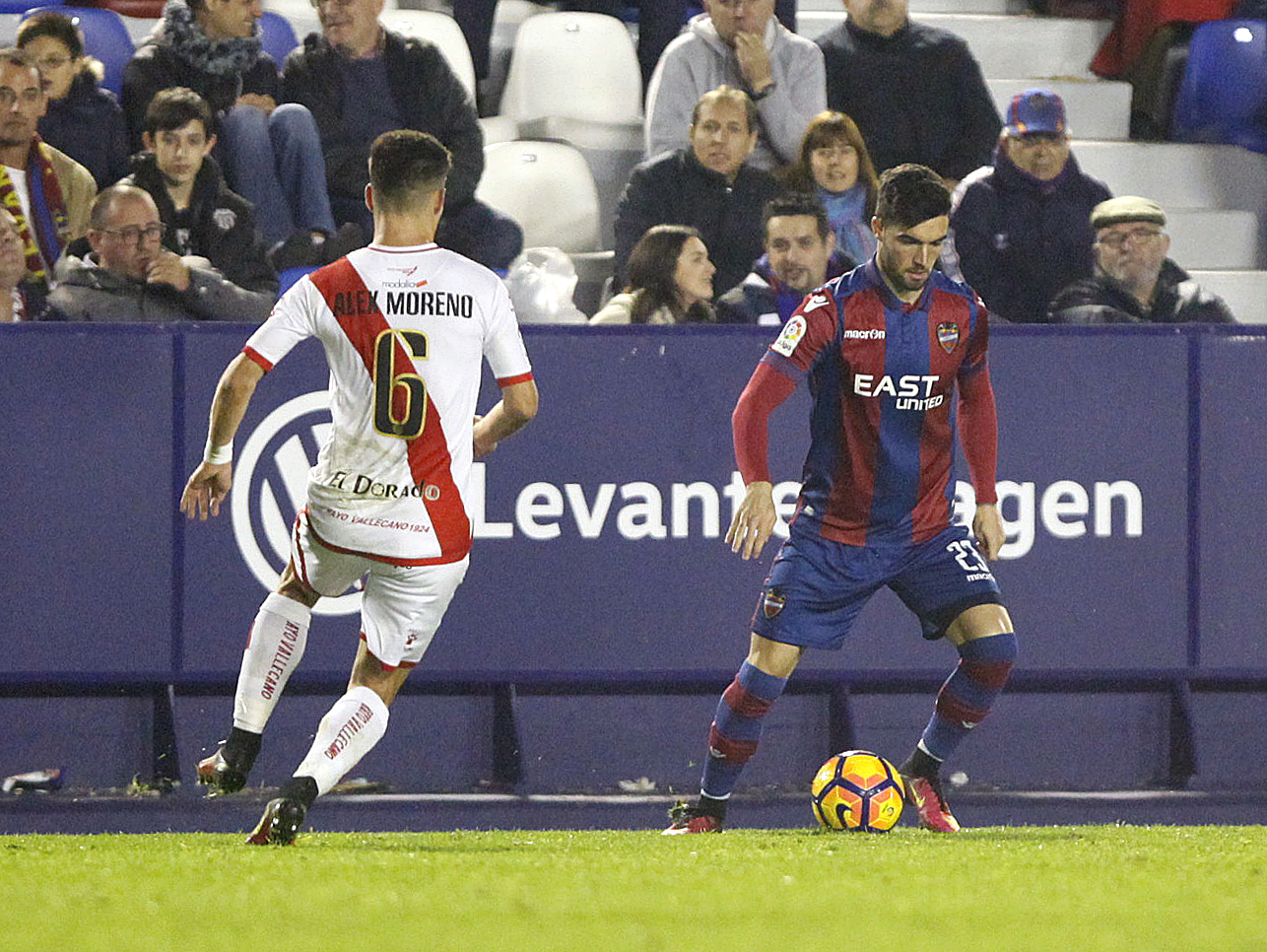 El Levante supo interpretar cada una de sus señales para primeramente asestar un golpe mortal y a posteriori mantener sus efectos. A través del balón llegó al confort en el capítulo inicial, aunque tuvo que descifrar un mal sueño tras un disparo de Javi Guerra que ahuyentó Chema en la boca del lobo con Raúl totalmente indefenso El gol local llegó en el instante de mayor efervescencia con el cuero. De forma acompasada el balón iba recorriendo toda la geografía del campo para resquebrajar el intento de presión del Rayo. Baraja se lamentaba desde la banda. Fueron los minutos granotas más centelleantes con Rubén enarbolando la bandera de la agitación por el flanco zurdo en estrecha colaboración con Pedro López. Asido al esférico rasgó el partido. Después el hecho de alejarse del balón no significó que cercara la desolación. El Levante supo manejarse en la guerra fría. El bloque mostró madurez para comportarse como un equipo inexpugnable. Apeló al orden y a una disciplina espartana para condenar a una escuadra que en realidad nunca se sintió legitimada para intimidarle.