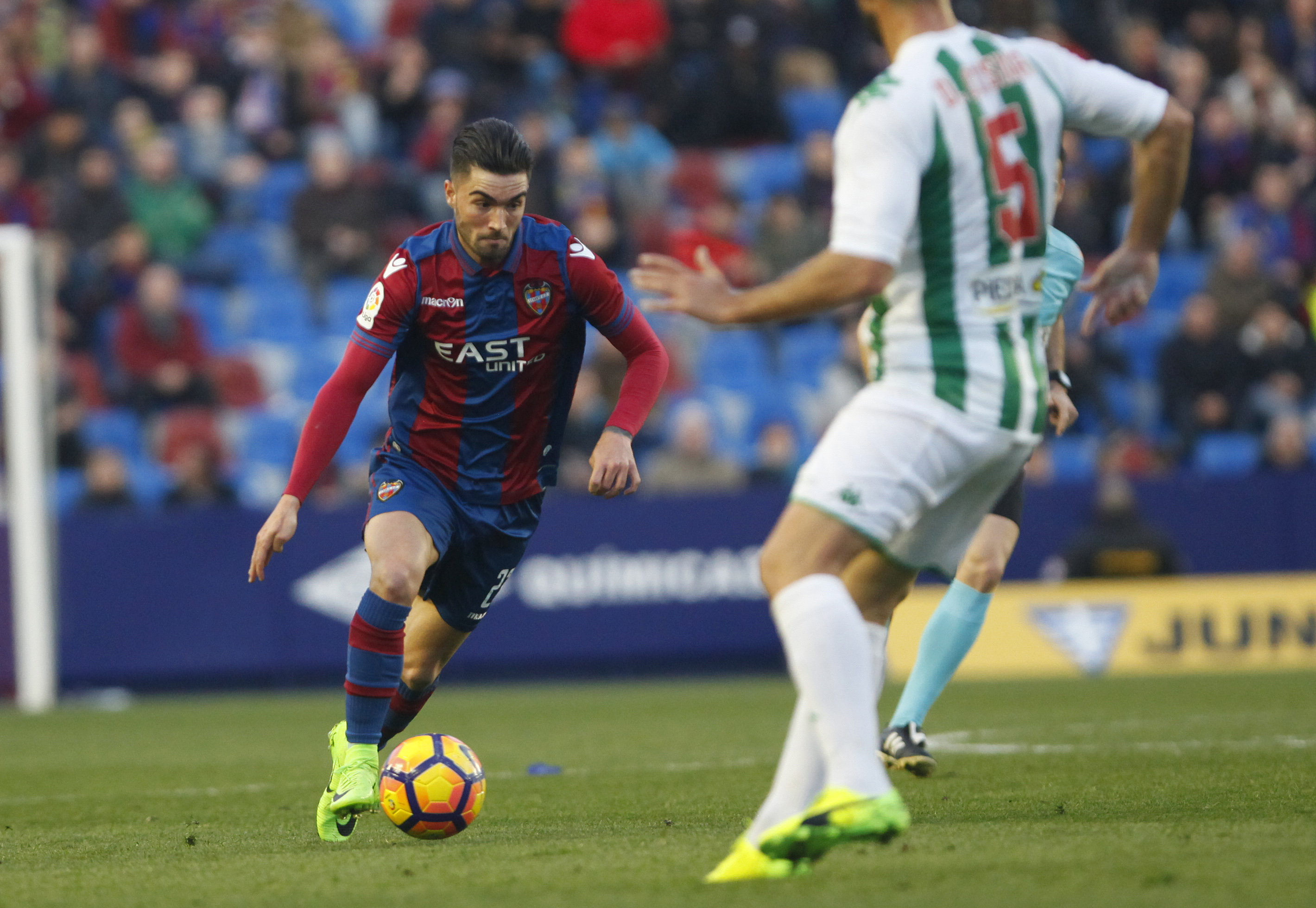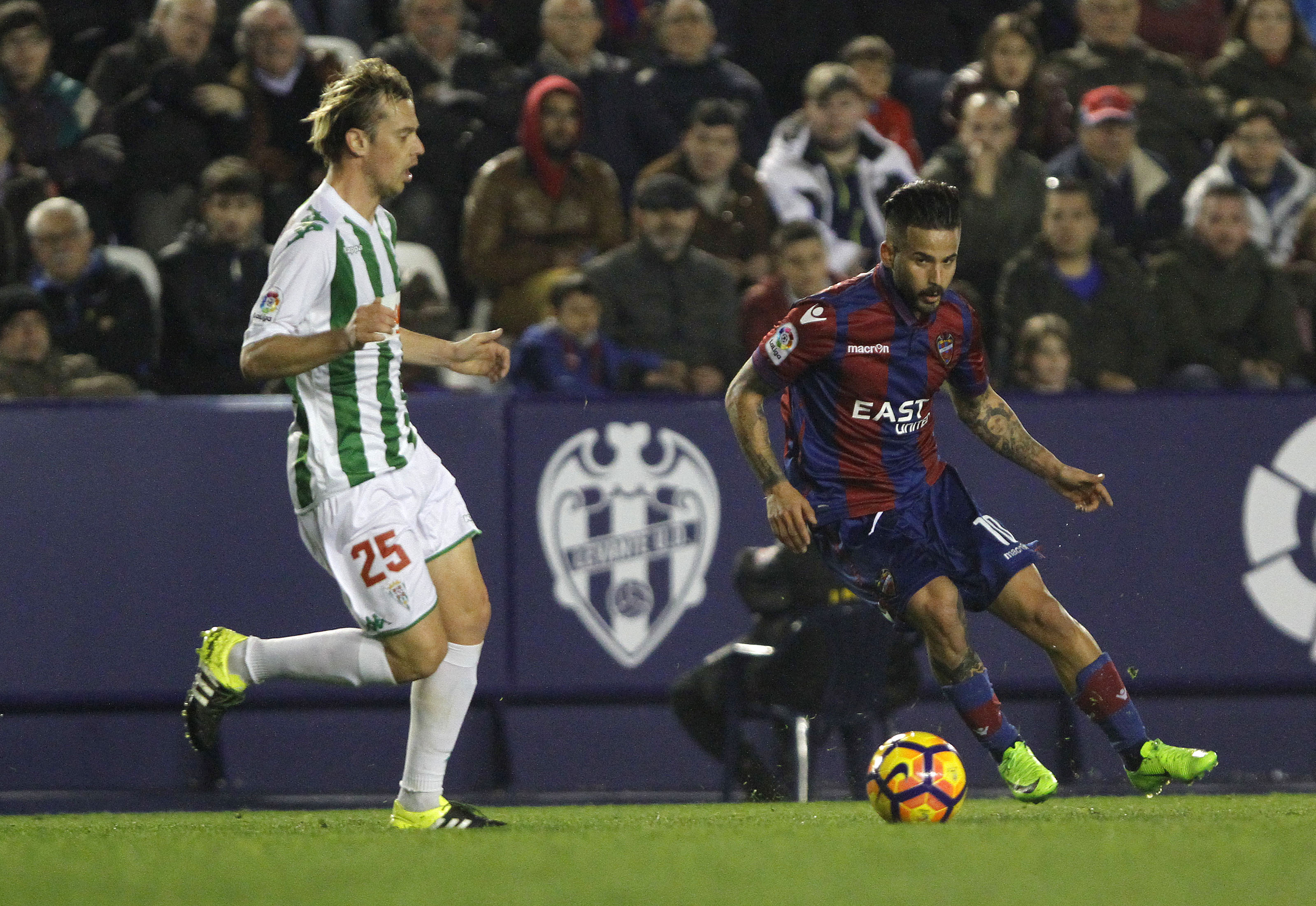 Inclusive Héctor Rodas se proyectó por el área de Raúl decidió a demostrar que el fútbol puede ser algo inescrutable. Su alma de atacante emergió con una violenta volea inabarcable para el cancerbero azulgrana. La grada reconoció justamente la plasticidad de la diana. En ese punto del choque en el que el guion parecía totalmente alterado, para plasmar realidades alejadas al pensamiento inicial, el asistente de la tribuna había obviado un gol legal de Roger. Y Campaña chocó ante la pierna de Razac en una acción de tiralíneas. El Córdoba sufría si el Levante imprimía velocidad a sus manifestaciones. Pudo romper el partido el Levante y se sintió desdichado y desprotegido en la recta definitiva del primer capítulo. Y no es un mero contrasentido. Por momentos perdió de vista el balón para caer preso de la desidia y se sintió exigido y atenazado por un colectivo que fue ganando en autoestima y que lo fue recluyendo sobre el área de Raúl.