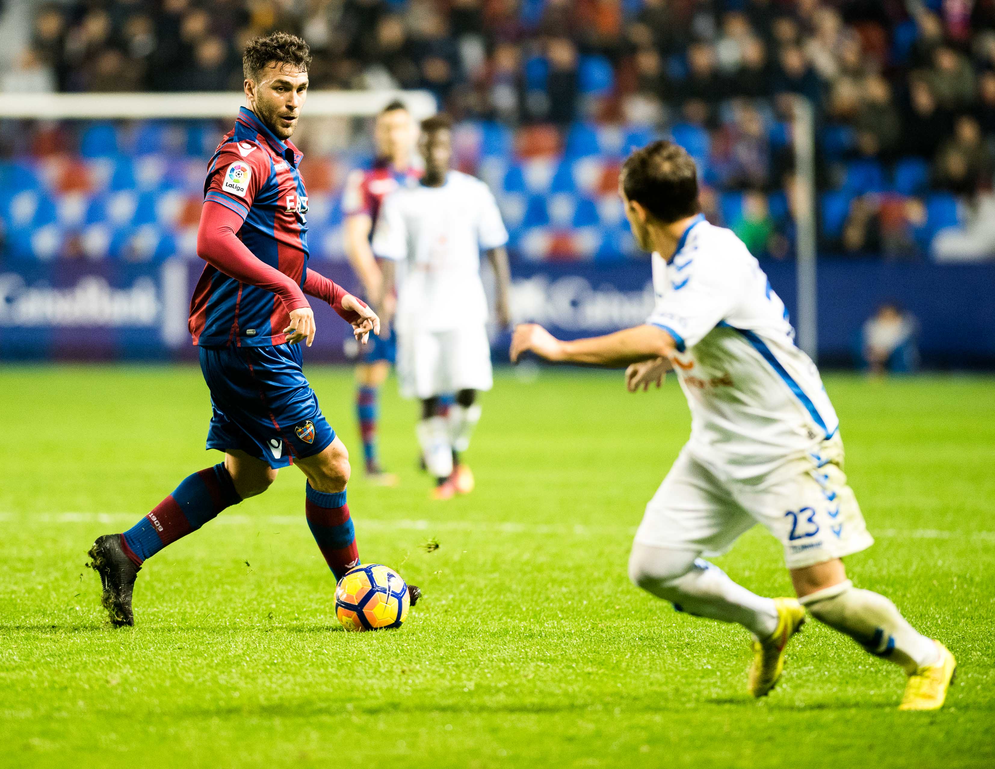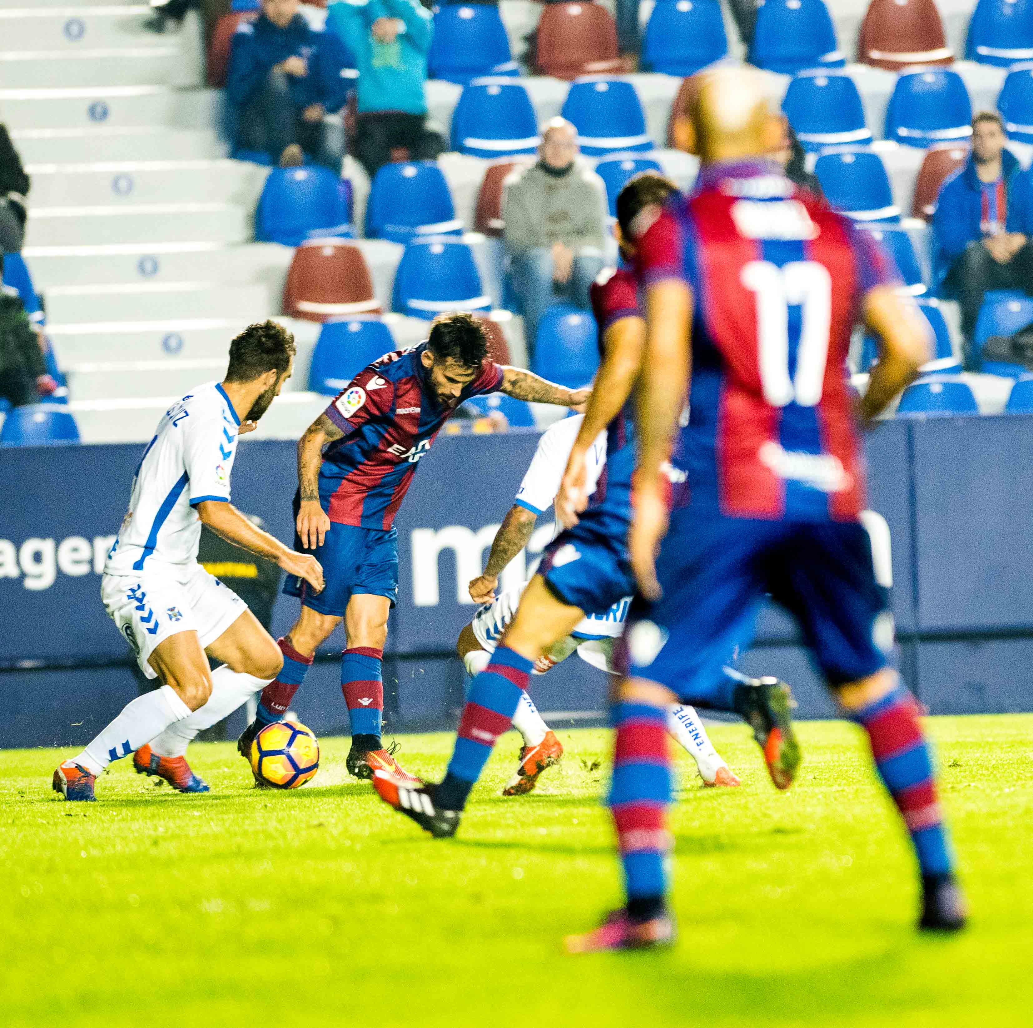 Quizás el gol de Casadesús sea una metáfora del estado anímico del Levante de las últimas semanas y de la evolución tortuosa que destilaba un partido que la escuadra azulgrana merecía domesticar, pero que podía resbalarse cuando el cronómetro corría ya de manera amenazante e inexorable hacia su ocaso ante la impaciencia de la grada. La heterodoxia marcó la ejecución de una diana que acentuó la figura de Casadesús, elevado a la condición de héroe de dimensiones colosales, en una tarde repleta de sospechosas que aventuraba emociones fuertes desde su mismo nacimiento. Lo cierto es que los remates sobre la portería del Tenerife se fueron sucediendo ante la mirada aterradora de la masa social granota. El balón cercaba la portería de la entidad insular. En el barullo formado a escasos metros de la línea que separa el éxito del fracaso estaba la resolución del encuentro. Todo el mundo era consciente de esa premisa en ese tramo de la cronología de la cita. La acción adquiría preponderancia. Esa sensación gravitaba sobre el cielo del Ciutat, pero nadie parecía acertar para dar el toque de gracia. Un taconazo elegante de Verza, un cabezazo de Víctor Casadesús, una mano inesperada de Dani para hacer del caos una peligrosa forma de vida… Todo al filo de la navaja con el partido escurriéndose en el día en que conjugar con la victoria era más que una ambición una necesidad perentoria.