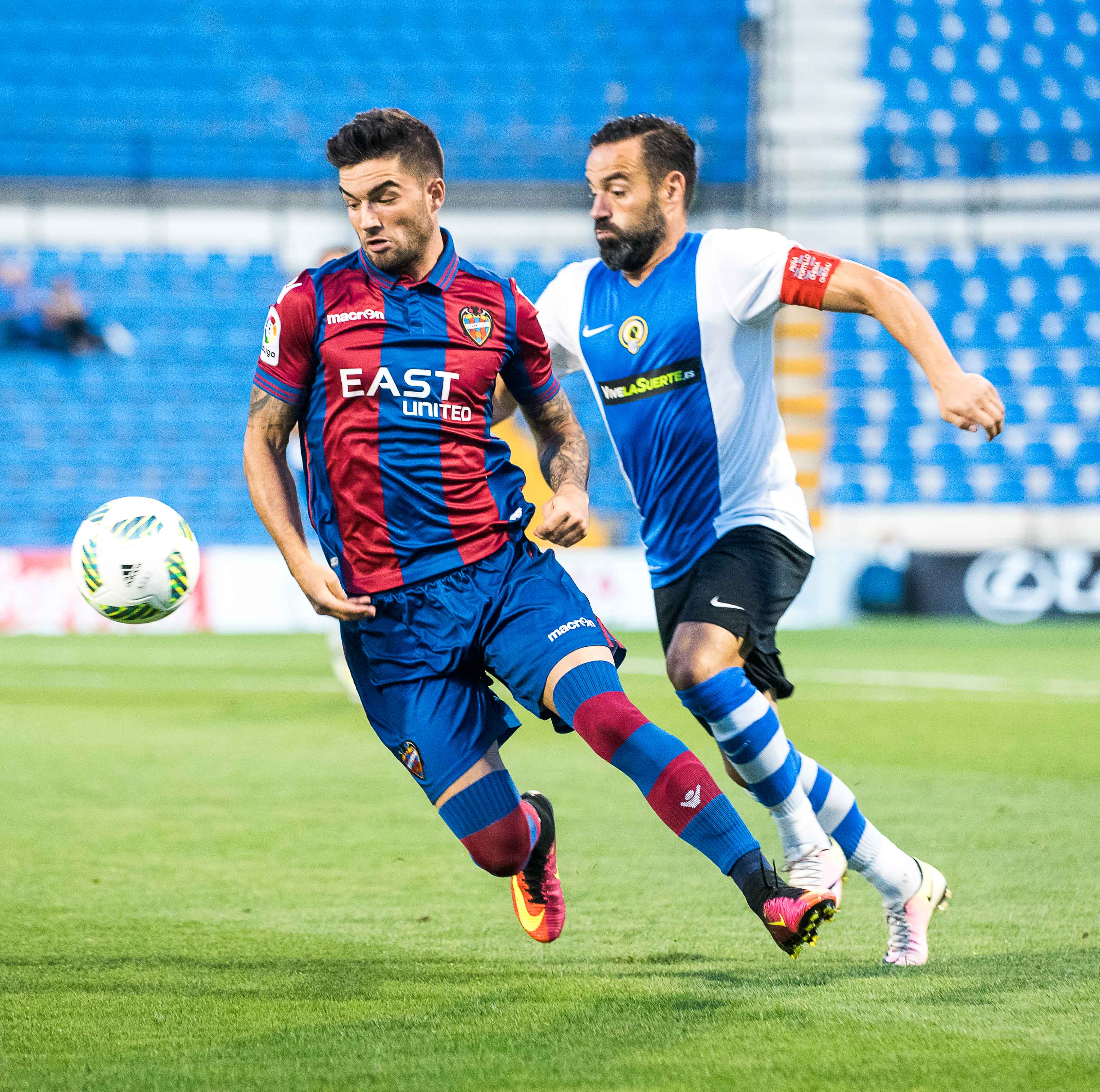 El Levante cerró el ciclo de los enfrentamientos de preparación en el Rico Pérez de Alicante ante el Hércules consignado su segunda derrota de la pretemporada. El gol de Chechu fue suficiente para tumbar a la escuadra azulgrana. No obstante, y pese a la derrota, es posible rastrear detalles. El primer tiempo permitió corroborar la calidad individual de José Campaña. El mediocentro sevilllano estrenó su condición de jugador adscrito al Levante en el Rico Pérez. A falta del lógico proceso de acoplamiento, después del compromiso alcanzado el pasado jueves, a su nuevo entorno ratificó sus prestaciones y caracteres instalado en la línea de medios. Es evidente que su ascendente en el bloque deberá ser mayor. El futbolista ejerció de ligazón entre la medular y los jugadores que se integran en las cercanías del ataque. Campaña escondió el cuero siempre vigilante y muy atento a los movimientos de los futbolistas de la vanguardia. En ese sentido, su fútbol se caracteriza por la verticalidad y por una tendencia exquisita a desenmascarar cualquier resquicio sobre el verde por el que puede alojar el esférico sobre la espalda de los defensores.