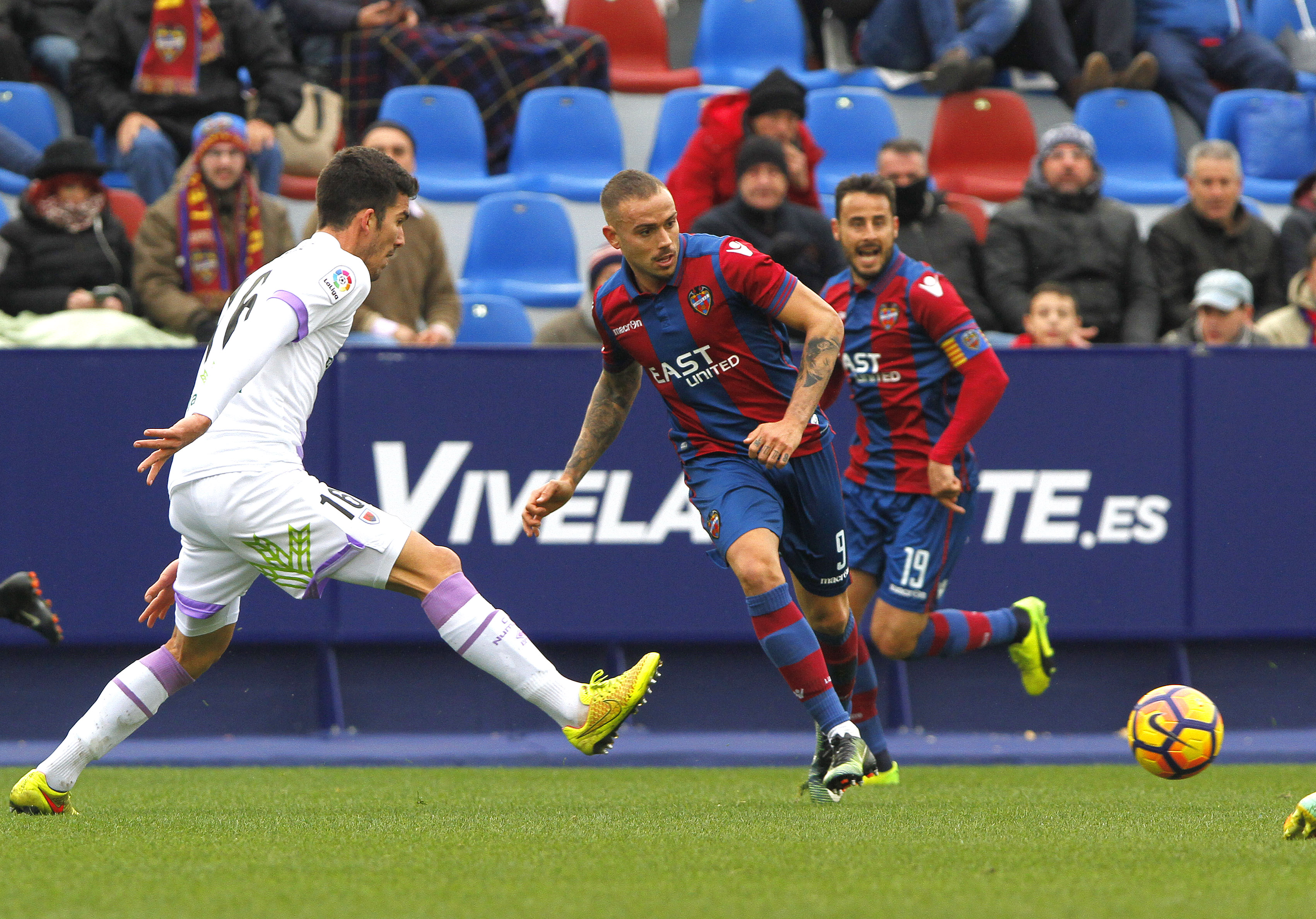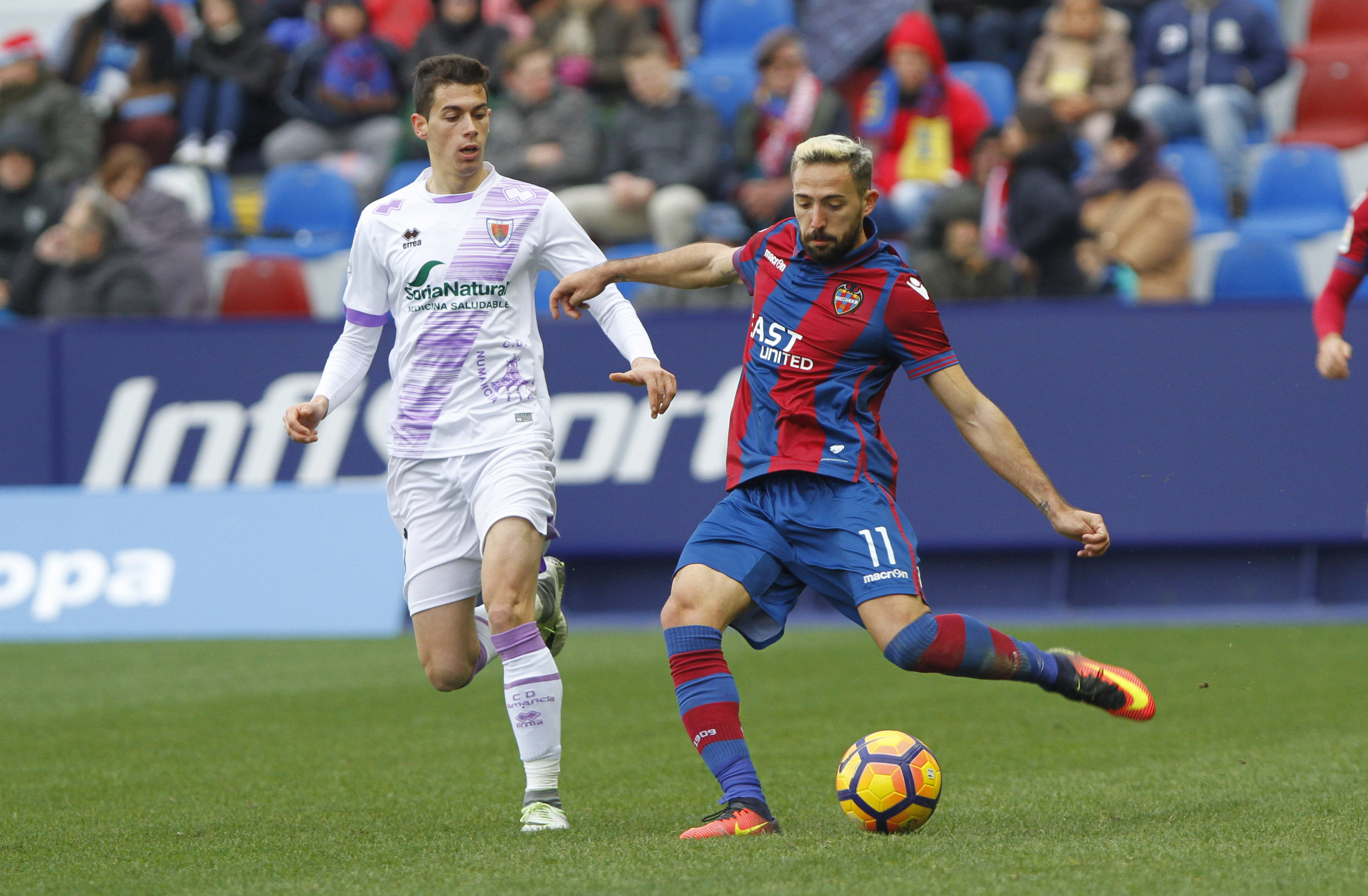 El Levante había perdido de visto la línea de medios anestesiado por la efervescencia de Julio Álvarez. Allí donde se cocina la esencia del fútbol se arremolinaban las camisetas blancas del Numancia. La entidad castellana se movía por la faz del Ciutat de València con jerarquía. Su dominio no era indiscutible, pero tampoco discutido. No obstante, todo se precipitó tras una acción trenzada que protagonizaron al unísono Jason y Roger. La ola de frío polar que azota a la Comunidad Valenciana en estos días de no congeló sus corazones, ni heló tampoco sus emociones. Ni tan siquiera sus pulsaciones. Ni la fiebre encolerizada que afila sus botas cuando siente el pálpito grandilocuente del gol. Una mirada bastó para erosionar la defensa soriana y para evidenciar una complicidad absoluta. Todo aconteció a la velocidad del sonido. Roger contempló por el rabillo del ojo la poderosa zancada de Jason en veloz internada para desafiar la autoestima de Aitor.