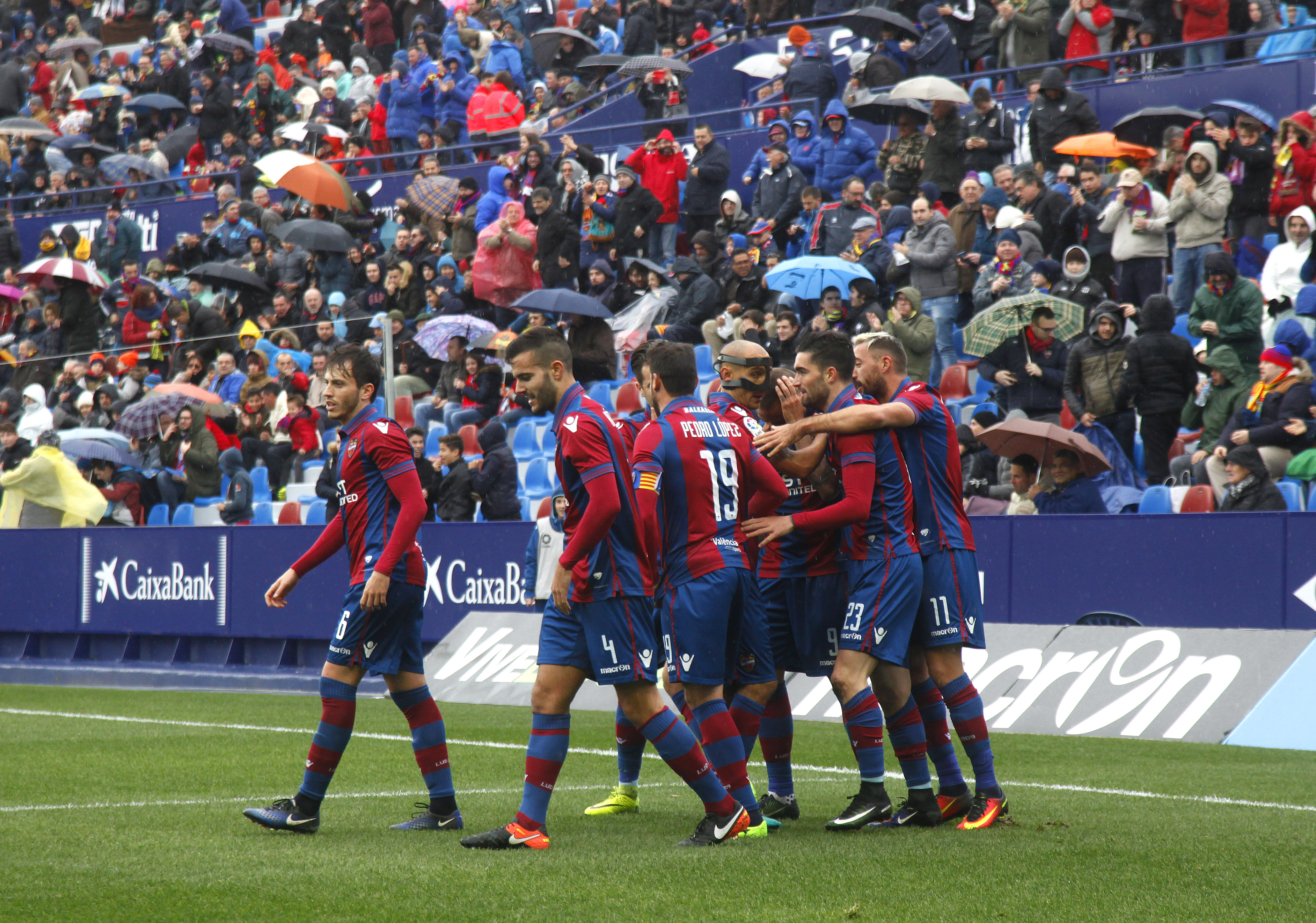 La sociedad establecida amenaza con convertirse en infinita; tan interminable como ilimitada a partir de los hechos que se van sucediendo cada semana en el interior del verde. Roger y Jason capitalizaron la sexta victoria consecutiva del Levante en el ecosistema de la categoría de Plata en una mañana en la que el fútbol escaseó. Hace una semana dejaron su impregnación en la victoria consignada en el feudo de El Alcoraz de Huesca. Y su latido no tiene final en el marco de la secuencia liguera. El número conquistado adquiere trascendencia por su calado y, es una evidencia, por su magnitud. La escuadra que prepara Muñiz parece dispuesta a transgredir las leyes que emanan de una división con una tendencia suprema hacia la igualdad. La fuerza del equipo de Orriols quiebra esa pretendida simetría que, por norma, suele caracterizar a la categoría Plata.A falta de estética, pegada y contundencia para resquebrajar la paridad de un partido que el Levante nunca llegó a domesticar en su totalidad. En jornadas de zozobra, el bloque se agarró a la clarividencia de una dupla de contenido letal ante el veneno que inocula en sus apariciones compartidas. La acción fue diabólica en su concepción y mortífera en su conclusión con Jason alzando las manos hacia el cielo de Orriols en señal de gratitud.