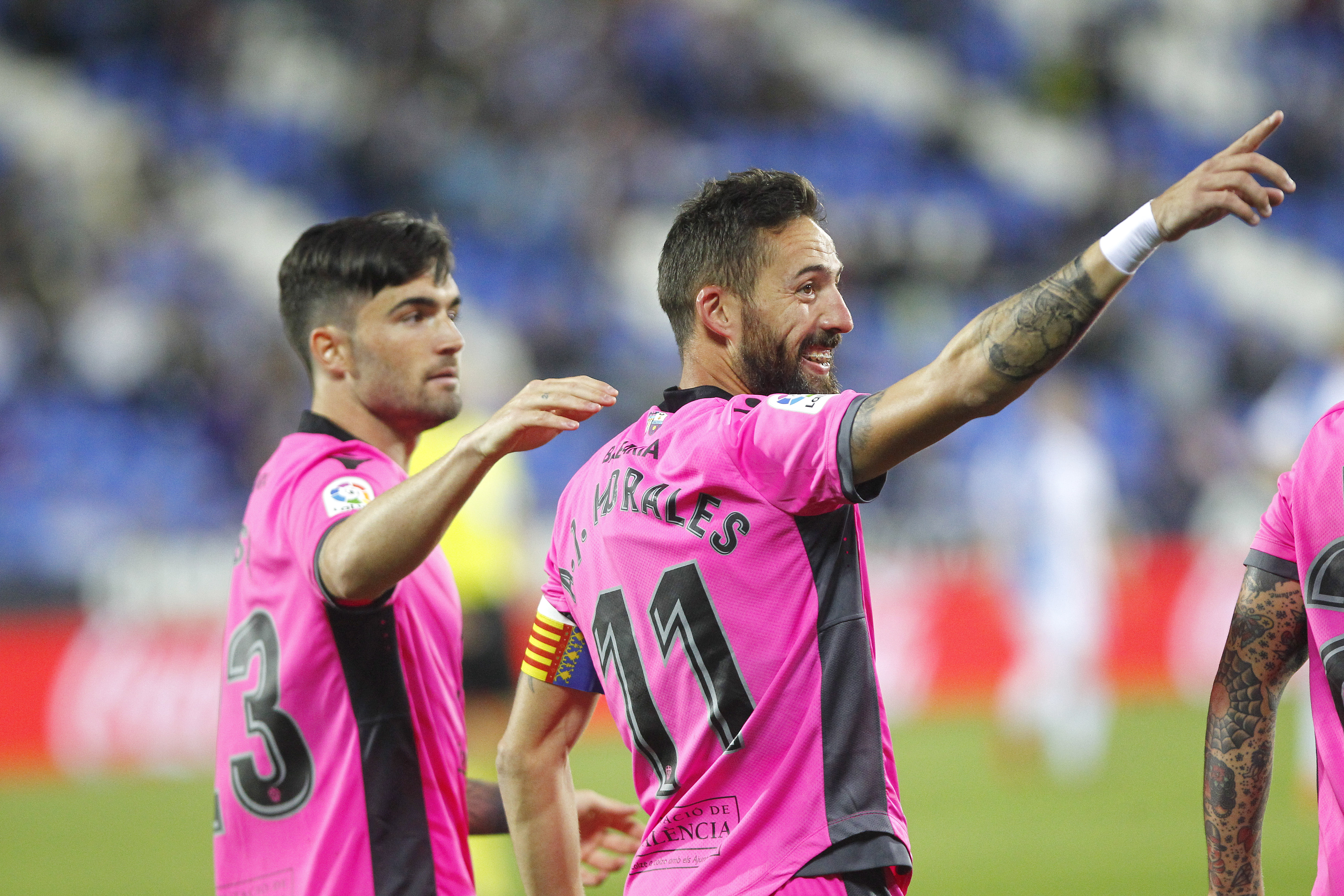 Morales acostumbra a celebrar efemérides en las postreras jornadas del campeonato. Frente al Málaga capitalizó los minutos previos a la epifania de la cita tras firmar su primer centenario en la elite con la elástica granota. El Comandante aceptó el desafío de empuñar con fuerza el blasón levantinista con la finalidad de liderar una permanencia histórica. Desde ese prisma, decidió dar varios pasos al frente en un contexto de crisis para acaparar protagonismo. No es un acto novedoso en su currículum como granota. Hay ejemplos de este espíritu de rebelión. El gesto denota compromiso y respeto por el escudo azulgrana. El episodio no estaba desprovisto de complejidad por las prestaciones emitidas por un colectivo en estado de depresión. Los goles y la influencia del rastro dejado en cada una de las batallas atestiguan su capacidad de liderazgo y su complicidad. Cada gol le acercaba a la cúpula de los más egregios goleadores azulgranas en Primera División. En Butarque se graduó tras aventajar a David Barral en materia anotadora. No obstante, el círculo, en cierto modo, sigue abierto porque nadie duda de que habrá nuevas manifestaciones de Morales en las próximas citas