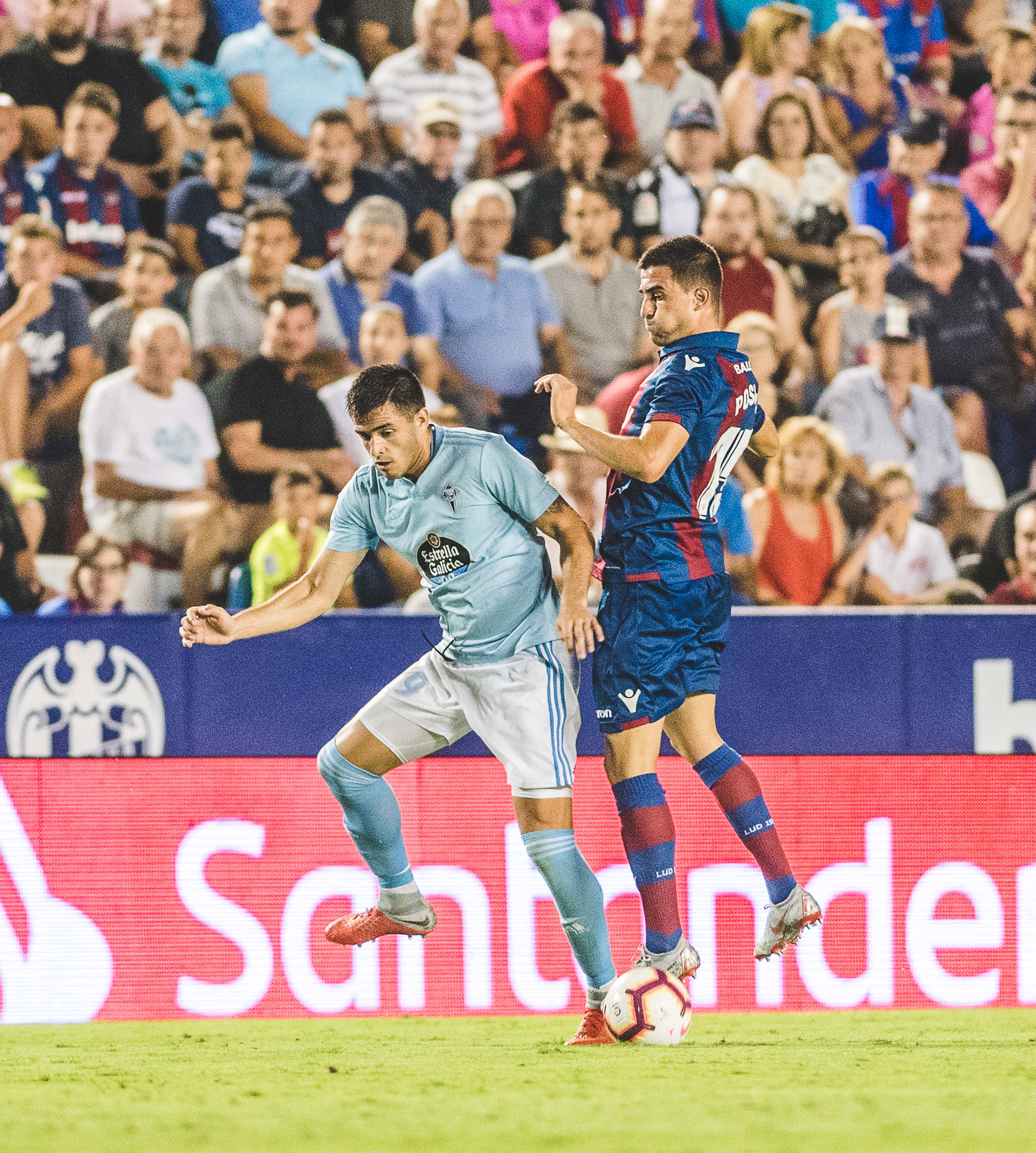 El Levante convergió con emociones antitéticas durante un partido que demostró la complejidad que entraña la Primera División del balompié patrio. Nadie está a salvo de sufrir los embates de una categoría devastadora en sus manifestaciones. Ni tan siquiera después honrar la victoria tras la demostración del colectivo que prepara Paco López en el Benito Villamarín ante el Real Betis. El Levante se movió entre la esperanza y el desamparado que generaba cada aparición del Celta por las cercanías de la portería resguardada por Oier. Máxime tras los goles de Pione Sisto y Maxi Gómez en el transcurso del primer acto. Un gol mudaba todo. El partido no tenía arneses. El balón iba de un área a la otra. Y esas emociones son difíciles de dominar. No obstante, el Levante prefirió morir de pie que derrumbarse rendido. Aceptó con resignación los golpes, pero no abdicó de la cita liguera. Sintió con virulencia cada ocurrencia de Pione Sisto, pero se mantuvo erguido exponiendo con orgullo unas señales de identidad que le impiden claudicar. Desde ese prisma, Roger pudo mitigar la angustia local con un vuelo en picado y con un ajustado disparo que se marchó por encima del marco de Sergio Álvarez.