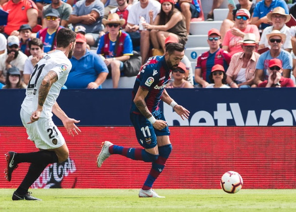 No era fácil mantener el rigor y la frialdad conforme se acerca el desenlace de un duelo caracterizado por una climatología sumamente hostil. Achicharraba el sol en el Ciutat de Valencia mientras el Levante trataba de sobrevivir al drama generado por la expulsión de Coke. Restaba una inmensidad hasta alcanzar el definitivo ocaso. Quince minutos que parecían no consumirse. Un infierno del que había que huir. Quizás fue una prueba para mostrar esa condición gremial que caracteriza al bloque que adiestra Paco López desde el banquillo. Los granotas incrementaron los esfuerzos para mitigar la ausencia de un jugador con jerarquía sobre el rectángulo y ascendente en el imaginario del grupo. Síntoma del estado por el que atravesaba el duelo fue observar la estela de Morales defendiendo con ardor el lateral derecho de la retaguardia azulgrana. Quizás haya muchos futbolistas en la figura del Comandante. De entre todos los jugadores que se esconden sobresale uno que hace del atrevimiento y la decisión una virtud. No hay retórica en el juego propuesto por Paco López. Hay vértigo e ímpetu. Empieza a ser una marca que personaliza al Levante del preparador valenciano. Morales recoge el guante.