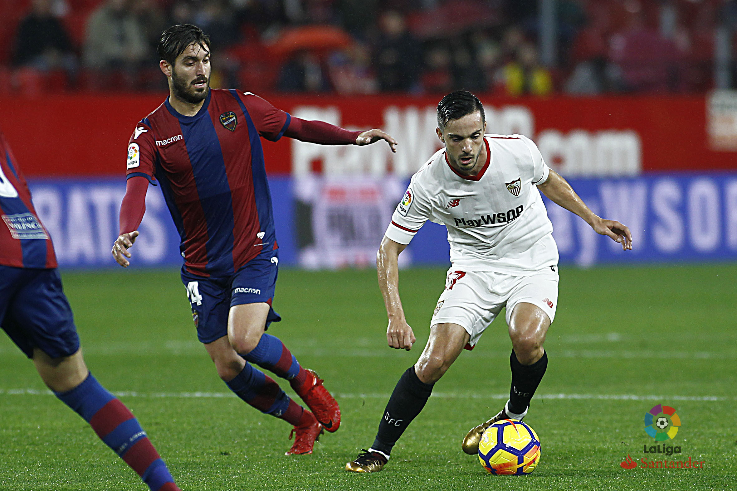El equipo blaugrana había trazado un plan y lo siguió con determinación y meticulosidad para asomarse con determinación y valentía por las proximidades del área sevillista. No hubo dudas. Ni falsas apariencias. El equipo no buscó refugio atrás. Nunca retrocedió dos pasos sobre sí mismo para guarecerse. Siempre cruzó la línea de medios con arrojo. Fue profundo y directo. Sus transiciones eran veloces. Las dudas acuciaban al Sevilla y a la grada. Por momentos fue tormentoso e impulsivo para atribular a su oponente. El Levante se comportaba como un equipo vital. Parecía sentirse cómodo en un escenario complicado. Por momentos los papeles parecían intercambiados. No hubo excesivas noticias del equipo de Berizzo. El Sevilla mostró un aire displicente como si el partido estuviera envuelto por una aureola funcionarial y fuera a madurar por el propio peso de sus galones. Los pitos arreciaron a la conclusión del primer acto. Fue una señal indicativa de todo lo acontecido.